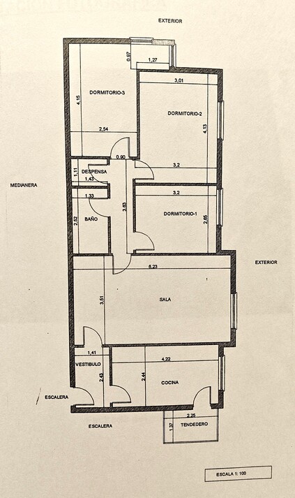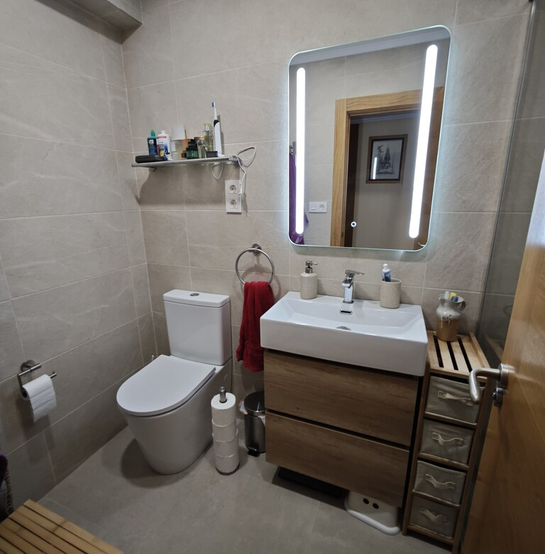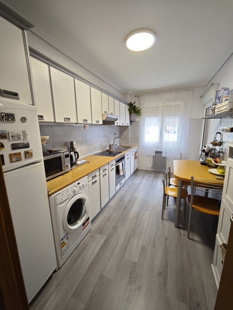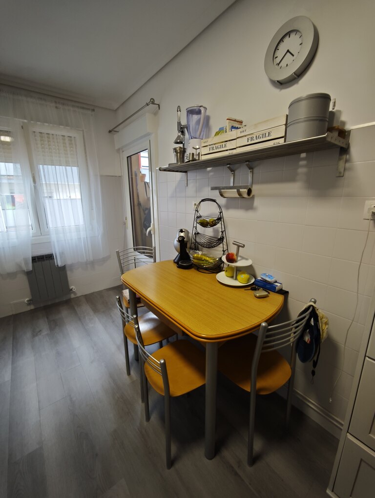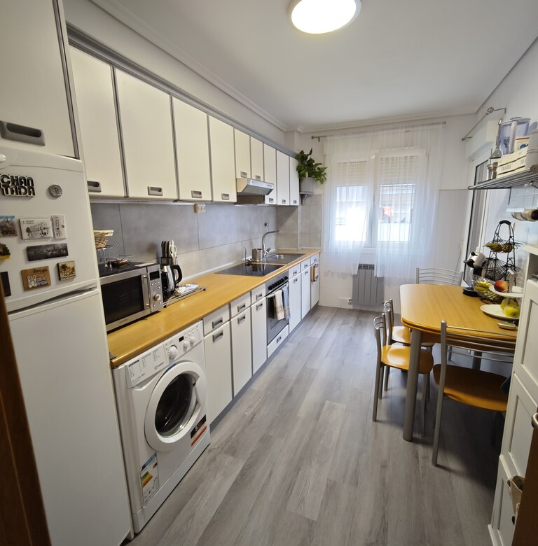 Dispone de una óptima distribución, con cocina con tendero, en el que se sitúa la secadora y la caldera de gas, contigua al comedor y salón, completando la zona de día, y desde este último accedemos a la zona de noche con 3 dormitorios y un amplio baño recientemente reformado.