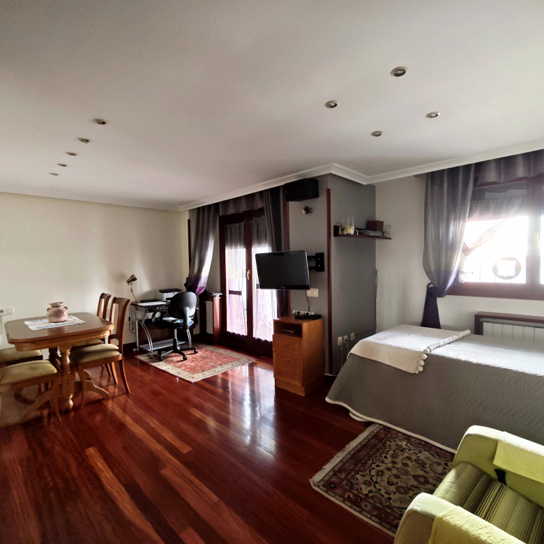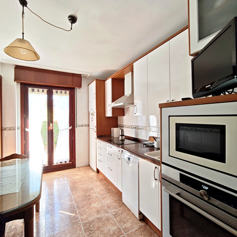 Caldera individual a gas, para agua caliente y calefacción, ventanas de madera y doble acristalamiento, tarima de madera de elondo maciza, puertas de madera de sapelly, toldos automáticos.