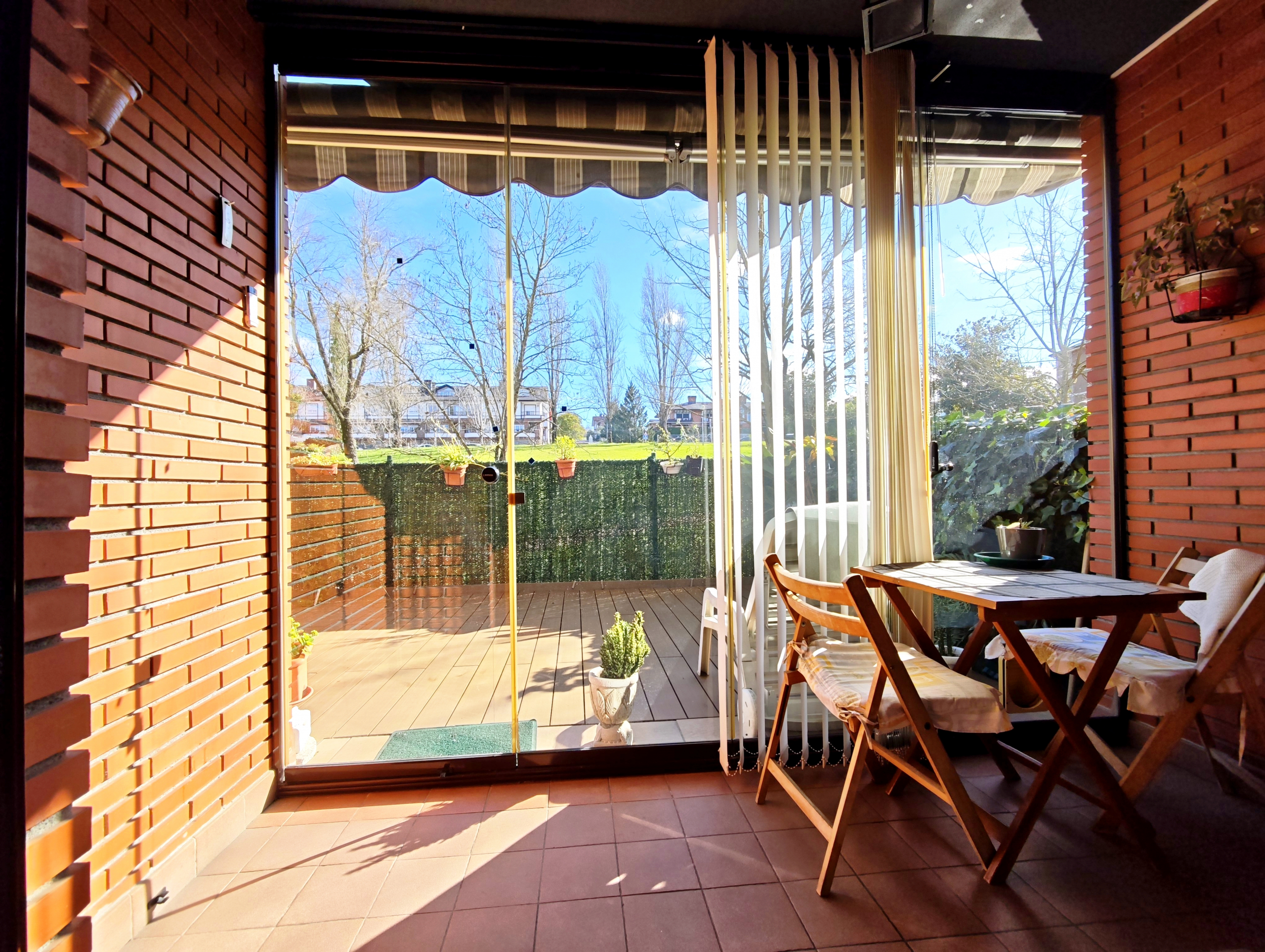 Vivienda que ocupa toda la planta baja del edificio situado en Zumar parkea 2. Edificio del año 2002, con acceso al portal mediante rampa accesible, videoportero y ascensor de 8 personas que comunica las plantas de viviendas con la planta sótano de garajes y trasteros.